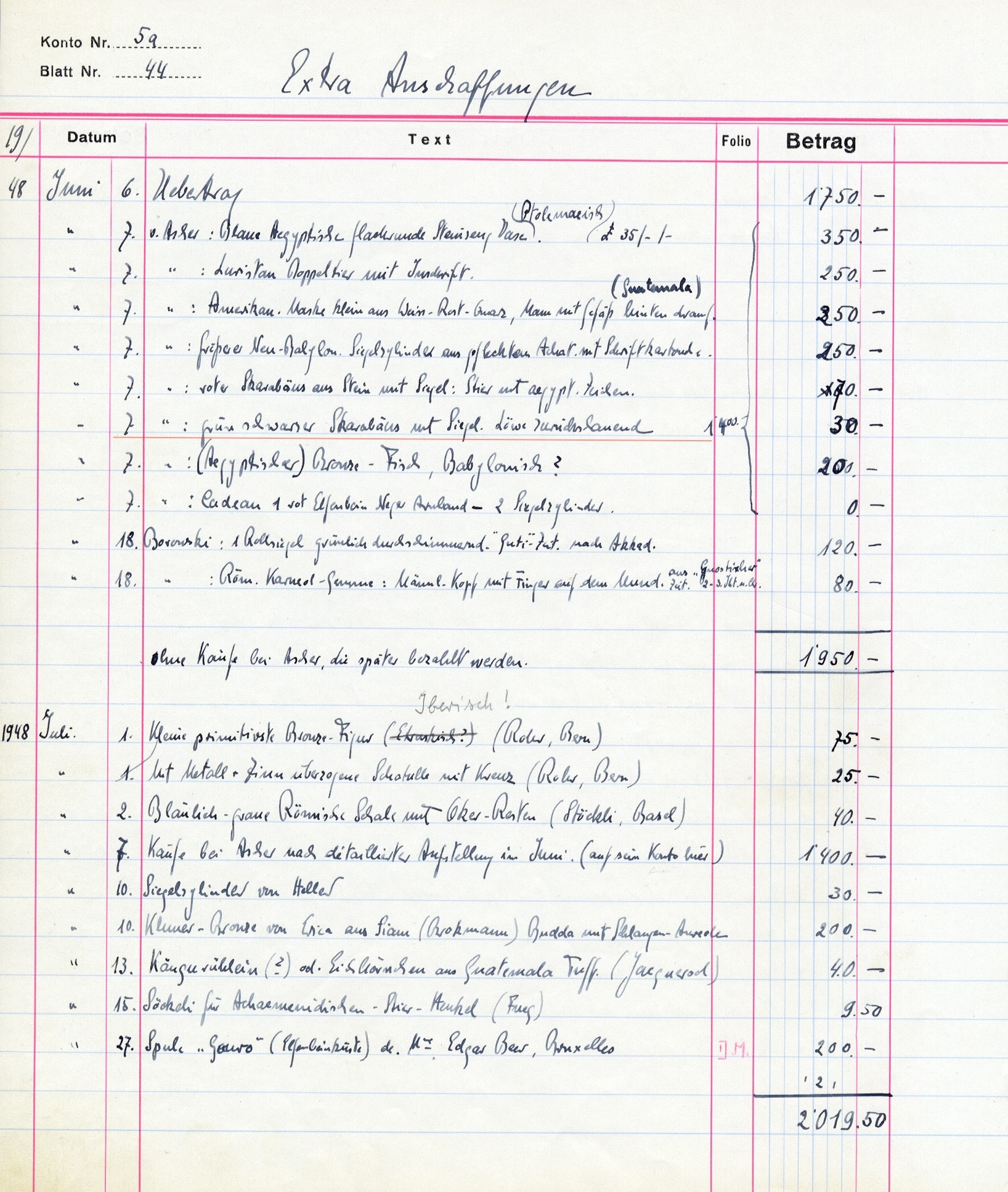 After an educational trip to Iran, Rudolf Schmidt developed a true passion for Luristan bronzes and started collecting Near Eastern art in the early 1930s. From the late 1930s onwards, he enlarged his collection with Egyptian art. With the assistance of dealers like Nicolas Koutoulakis (*1910-†1996), Eli Borowski (*1913-†2003) and others, he built a significant collection of Egyptian stone vessels, with highlights mostly from the Early Dynastic Period. His extensive collections of works of ancient civilizations - including Etruscan, Greek, Roman, African and pre-Columbian art - as well as paintings from the classical Swiss modern period, was unique in Switzerland.