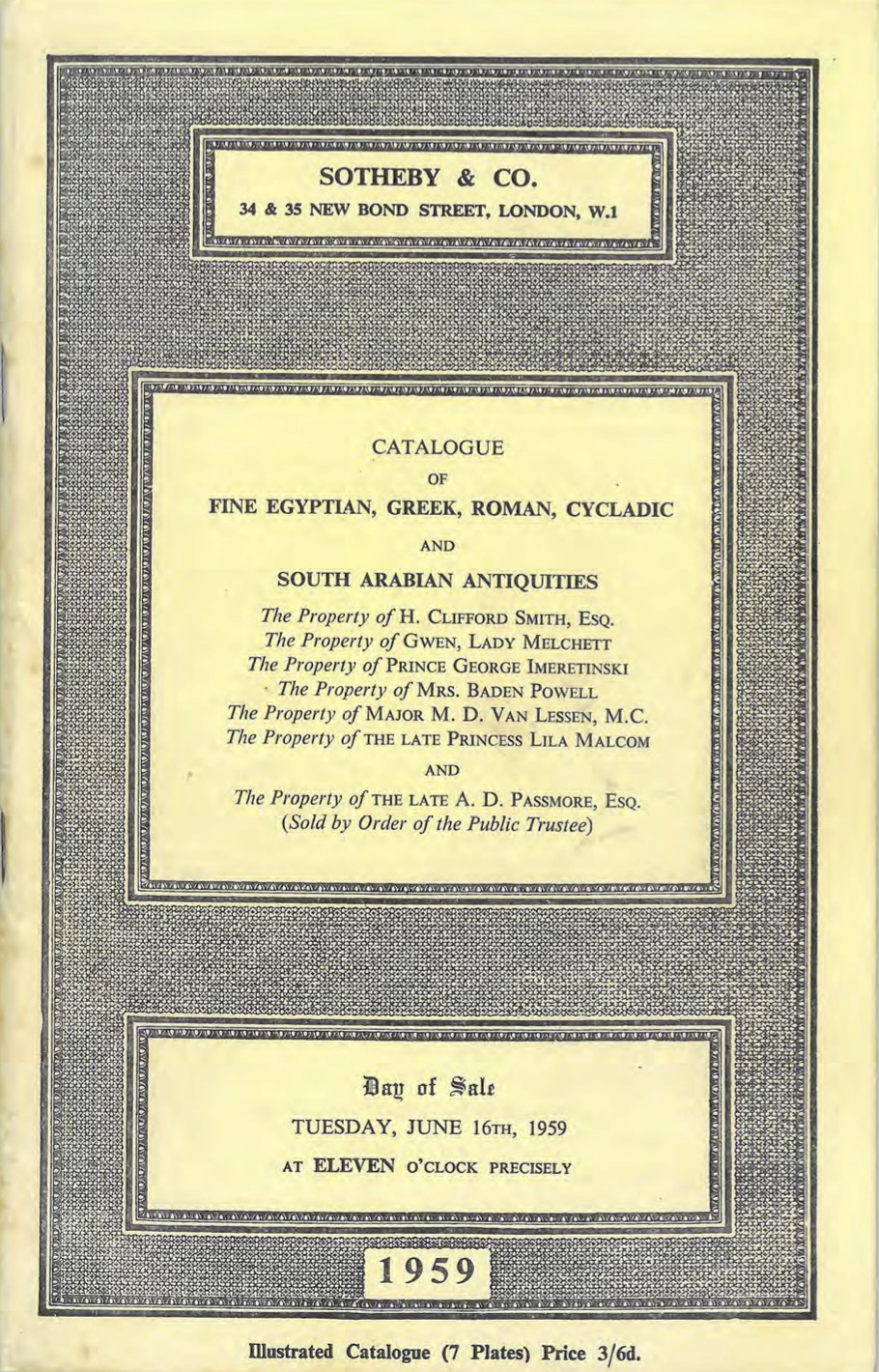 Sotheby's Antiquities, Catalogue of Fine Egyptian, Greek, Roman, Cycladic and South Arabian Antiquities, London, June 16th, 1959, lot 161, from the above